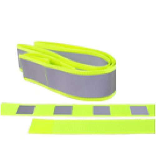 Banda (cinta) elástica reflectante para hombro y cintura, con 5 ajustes de velcro. Se puede usar como banda presidencial o como cinturón. Viene en práctica bolsa de polipropileno con orificio para colgar en ganchera.