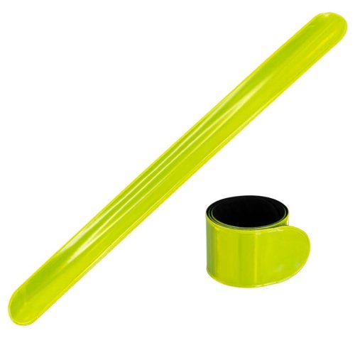 Banda Reflectante Retráctil, para uso nocturno. Reverso negro aterciopelado. Ideal para usar en muñeca, brazo y tobillo. Presentación en bolsita transparente de polipropileno con orificio para ganchera.