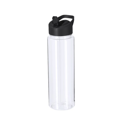 Bidón fabricado en RPET de 750 ml de capacidad con sistema de fácil apertura con dosificador de pajita y asa de transporte a juego. Libre de BPA.El material RPET se elabora a partir de plástico reciclado, para así fomentar la reutilización de residuos plásticos y ayudar a la sostenibilidad del planeta.