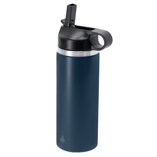 Bidón con 500 ml de capacidad fabricado en Acero Inoxidable Reciclado de doble pared, que garantiza una mejor y más duradera conservación de la temperatura. Sistema de fácil apertura con dosificador de pajita (libre de BPA) y asa de transporte a juego. Con distintivo de Acero Inox Reciclado. El acero es uno de los materiales más demandados y que puede encontrarse casi en todas partes, desde productos de uso diario a grandes construcciones. Con innumerables propiedades, entre las que cabe destacar la durabilidad y su alto grado de reutilización, convirtiéndolo en una alternativa muy valorada en soluciones de sostenibilidad. Debidamente tratado, permite obtener nuevos recursos de infinita utilización.