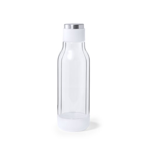 Bidón térmico de doble capa, de original diseño en alta calidad y de 500 ml de capacidad. Fabricado en cristal de borosilicato, que ofrece una resistencia, estética y durabilidad excepcionales, reduciendo así el consumo de productos de usar y tirar. Innovador cuerpo transparente que permite ver el interior en combinación con color blanco, fabricado con materiales de alto poder aislante. Presentado en atractiva caja de diseño.