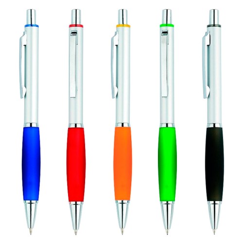 Bolígrafo de Aluminio modelo "Winner", con grip de color y terminales cromados. Escritura azul.