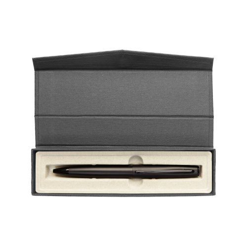 Metal. Cuerpo metálico mate. Clip de metal y punta plástica. Apertura giratoria. Tinta azul. Decape electroplateado en la parte superior. Presentación en estuche con cierre magnético.