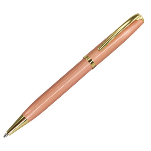 Bolígrafo Metálico Encobrizado, con terminales dorados. Escritura azul.