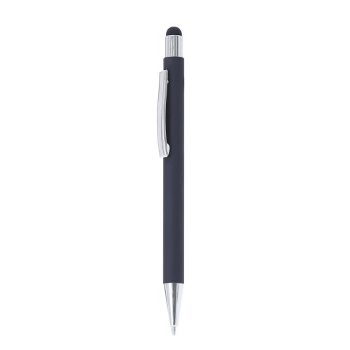 Bolígrafo puntero de mecanismo pulsador fabricado en aluminio reciclado. Pulsador y clip metálico en acabado cromado, acabado en puntero a juego. Cuerpo terminación en goma, especialmente diseñado para marcaje en láser. Distintivo aluminio reciclado en la parte superior del bolígrafo. De cartucho jumbo y en tinta azul. El aluminio reciclado es un material con posibilidades de reciclaje casi infinitas, sin perder sus propiedades originales y consumiendo menos energía en este proceso.Certificación GRS (Global Recycled Standard / Estándar de Reciclaje Global), que garantiza el origen reciclado del material usado para fabricar el producto.