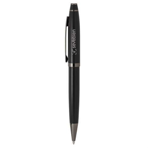 Cada detalle comunica distinción.Bolígrafo con apertura giratoria. Cuerpo de acero inoxidable de color con acabado mate. Clip, anillos y punteras metálicos color gun. Destape plata. Recarga metálica. Medidas: 13,5 cm.