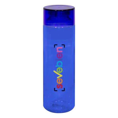 Botella de plástico de colores translúcidos con tapa a rosca plástica.