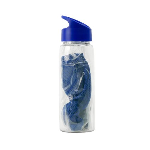 Botella deportiva fabricada en RPET con tapa de polipropileno. Cuenta con una toalla de poliéster, tapa con sorbete y anillo para mejor agarre. Es ideal para entrenamientos, actividades al aire libre o jornadas deportivas intensas