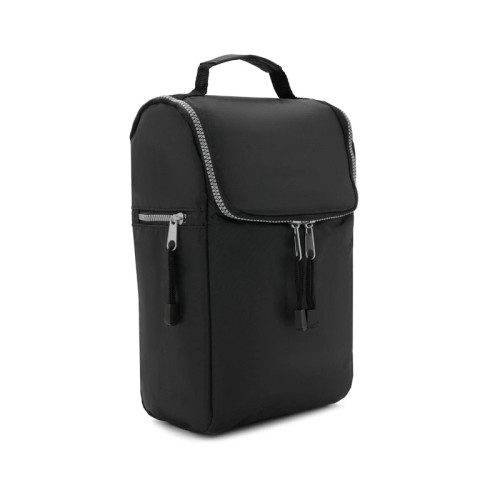 Cooler confeccionado en tela Nylon 600D, interior térmico forrado en PVC gris. Bolsillos laterales. Apto para llevar botellas, termos y otros. Capacidad: 8 Lts.