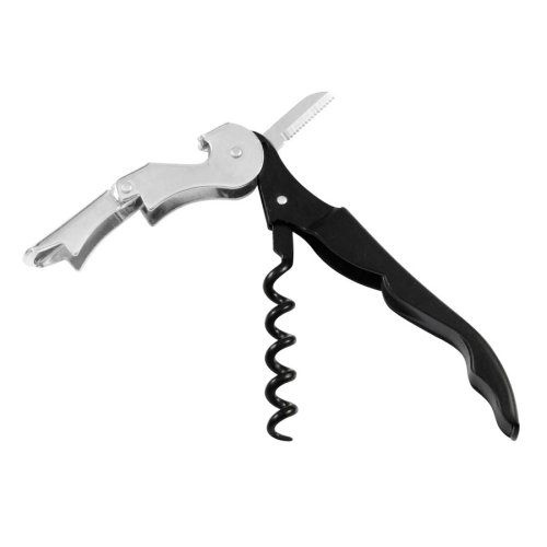 Descorchador profesional "Sommelier" de 2 tiempos de Acero Inoxidable con cubierta y tirabuzón de teflón. Presentación en caja de cartón plateada.