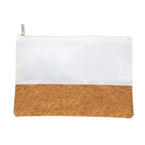 Estuche Cosmetiquero de corcho y poliéster satinado blanco, con cremallera.