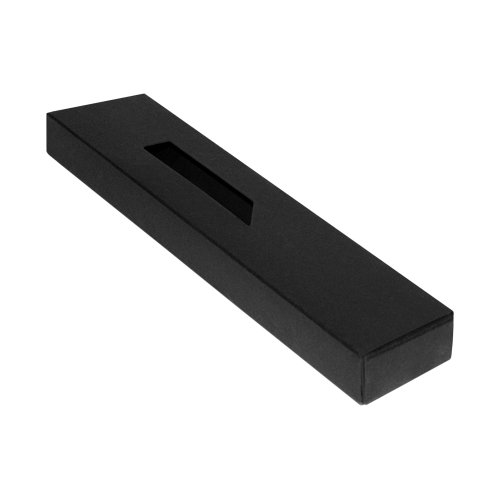 18 x 4 x 2 cm. Cartón. Estuche para un bolígrafo. Dos piezas de cartón: una base para guardar el bolígrafo y el estuche exterior con abertura para ver el interior.