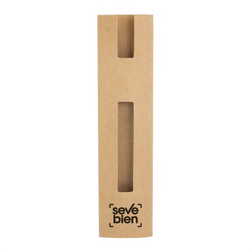 Eleva tu obsequio de lo simple a lo sofisticado.Funda para bolígrafos con extremo abierto y ventana.Medidas: 4 x 15,3 cm. Materiales: Papel kraft de 250 g. aprox.