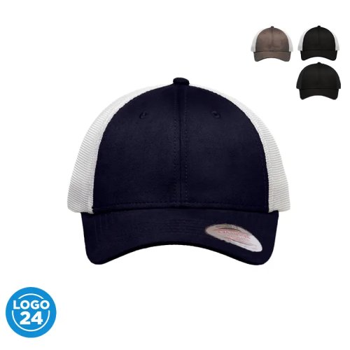 Jockey de 6 paneles de algodón símil gamuza y mesh. Cierre hebilla metálica y tira de símil gamuza. Sticker metalizado en visera.