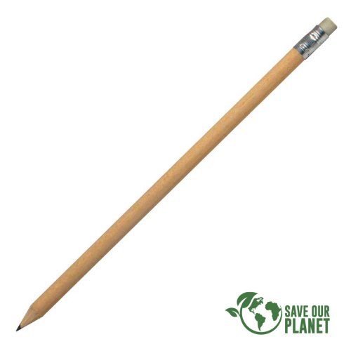 Lápiz grafito largo de madera barnizada. Cuerpo 100% cilíndrico, ideal para imprimir logos sin problemas. Incluye goma de borrar y viene con punta lista.