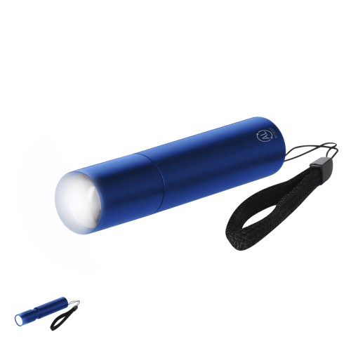 Resistente linterna con función zoom fabricada en Aluminio Reciclado. Cuenta con 1 LED de alto poder de iluminación, un pulsador protegido con recubrimiento de goma y una cinta de transporte para mayor comodidad. Linterna extensible para obtener mayor zoom. Funciona con batería de 400mAh y carga a través de cable tipo C. Incluye logotipo Aluminio Reciclado.