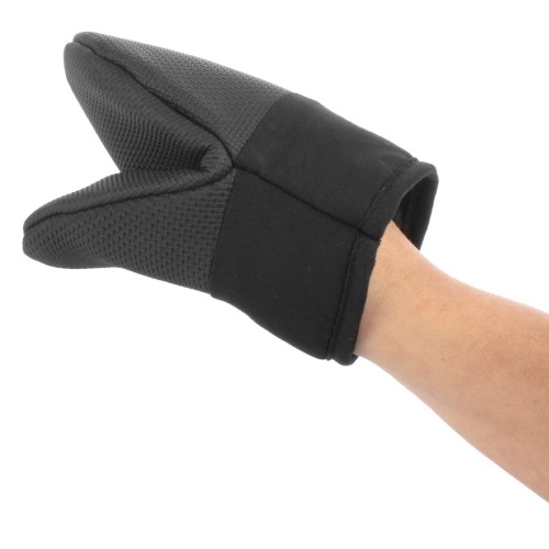 Mitón de Microfibra negra 70g/m2, con refuerzo de goma antiflama, para horno y parrilla.