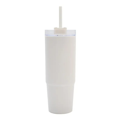 Mug térmico con asa y sorbete integrado. Hecho de polipropileno (PP), AS y silicona con doble pared. Es ideal para mantener tus bebidas frías o calientes mientras te mueves durante el día. Capacidad: 900ml Tahg