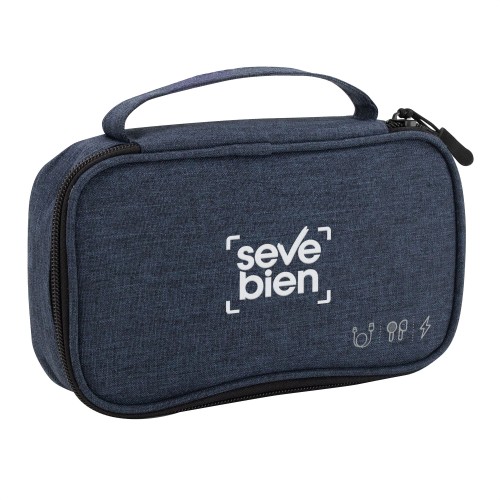 Ordena tu espacio con estiloOrganizador de cables. Estructura acolchada. Asa para transportar. Compartimento principal con cierre con tirador engomado. Interior forrado. En uno de sus lados cuenta con un bolsillo principal y dos pequeños de red, y en el lado contrario tiene un elástico con velcro multipropósito.Medidas: 20 x 12 x 5,3 cm.