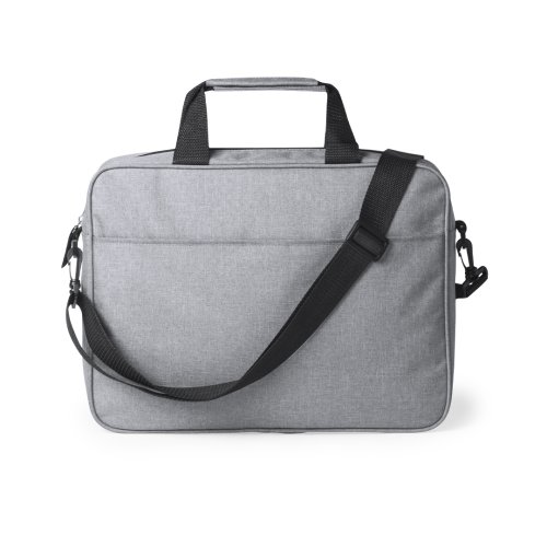 Portadocumentos de cierre de cremallera en elegante poliéster 600D de color gris. Con bolsillo exterior con cierre de velcro, cómodas asas reforzadas, cinta bandolera ajustable con cierre de mosquetón y accesorio en parte trasera para acople en barra de trolley.