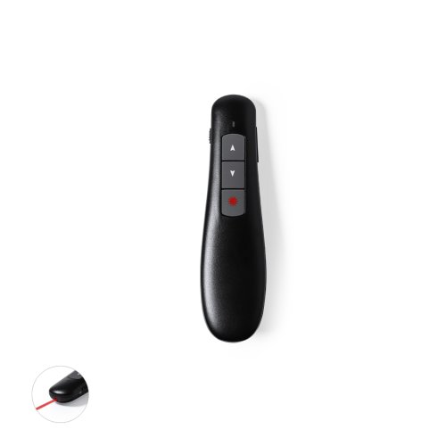 Puntero láser inalámbrico para presentaciones. De diseño ergonómico, incluye accesorio plug play para conectarlo al puerto USB del ordenador, sin necesidad de instalar software adicional para su correcto funcionamiento. Compatible con multitud de sistemas operativos (Windows, OS X, Linux y Android). Con botones avance/ pausa/ retroceso/volumen y alimentación a pilas: 2xAAA incluidas. Presentado en elegante y resistente estuche de cartón negro, con funda e interior troquelado en espuma. Manual de instrucciones en español e inglés.