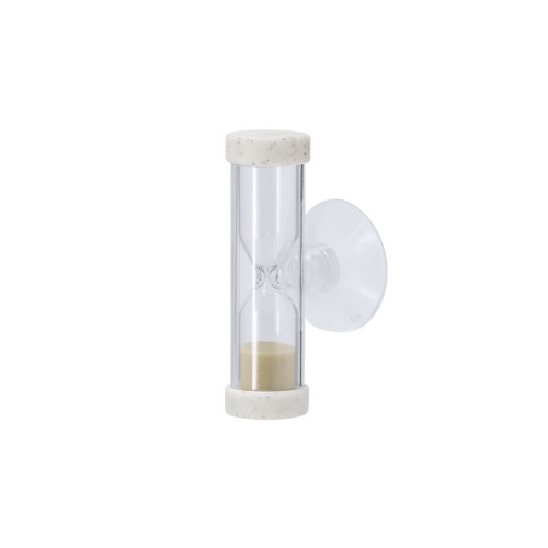 Reloj de arena con duración 2 minutos, fabricado en combinación caña de trigo y cristal. Cuenta con una práctica ventosa que permite fijarlo fácilmente.La Caña de Trigo fomenta la utilización de materias primas naturales, reduciendo así las emisiones contaminantes.