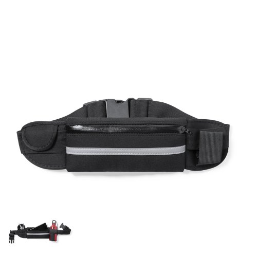 Riñonera de alta calidad fabricada en resistente soft shell (neopreno), con tira reflectante. Compartimento principal con cierre de cremallera, soporte elástico para bidón y bolsillo para llaves y otros pequeños objetos. Con cierre de hebilla y cinta ajustable, especialmente diseñada para actividades deportivas y de ocio.