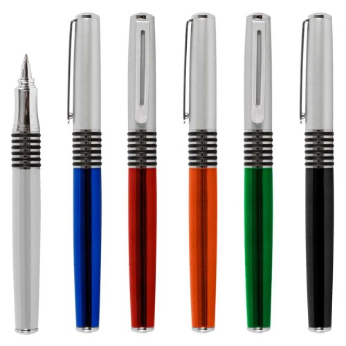 Roller Ball Metálico modelo "Manager", cuerpo de color metalizado y tapa plateada satin. Tinta negra.