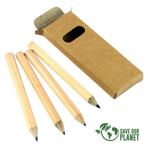 Set de 4 Lápices Grafito Negro hexagonales, en Estuche rectangular de Cartón reciclado con ventana.