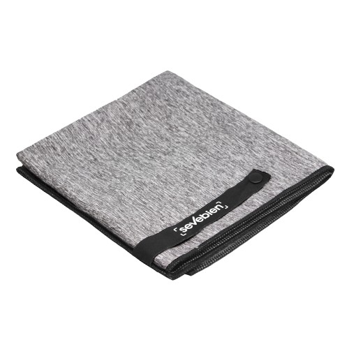 80 x 40 cm. Microfibra. Toalla de microfibra de secado rápido. Poliéster (200 g x m2) catiónico doble cara. Cinta negra que permite enrollar la toalla y aplicar logo.