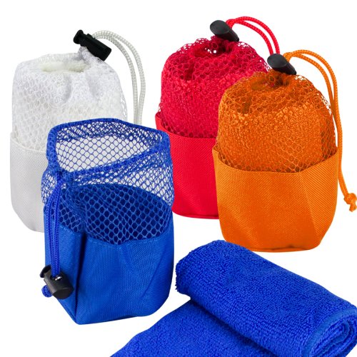 • Tamaño: Toalla 33 x 30 cm aprox / Bolsito Ø 7 X 11 cm aprox.• Colores:Blanco (01), Azul (02), Rojo (03), Naranjo (04), Amarillo (05), Gris (07), Negro (08), Verde (15), Morado (25).