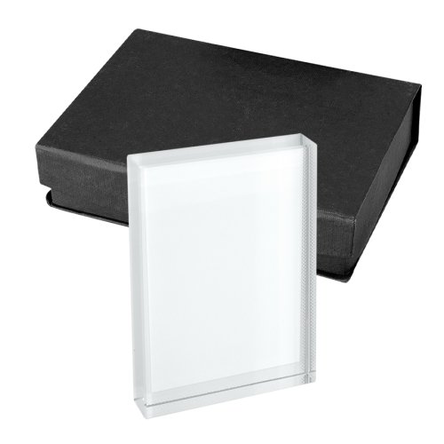 Trofeo rectangular de Cristal sólido para Sublimación. Presentación en caja de cartón negro con cuna color negro.