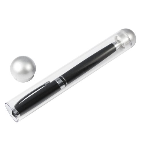 Tubo de Acrílico traslúcido para 1 bolígrafo. Tapas plateadas con superficie redondeada. No incluye Bolígrafo.
