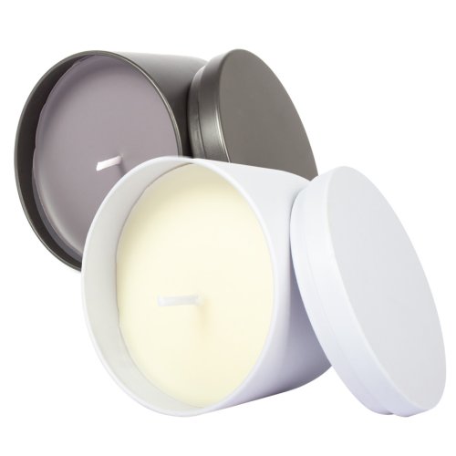 Vela aromática de 8oz en envase redondo de aluminio con tapa. Ideal para regalo de hogar y aromaterapia. Amplia superficie de impresión de logo.